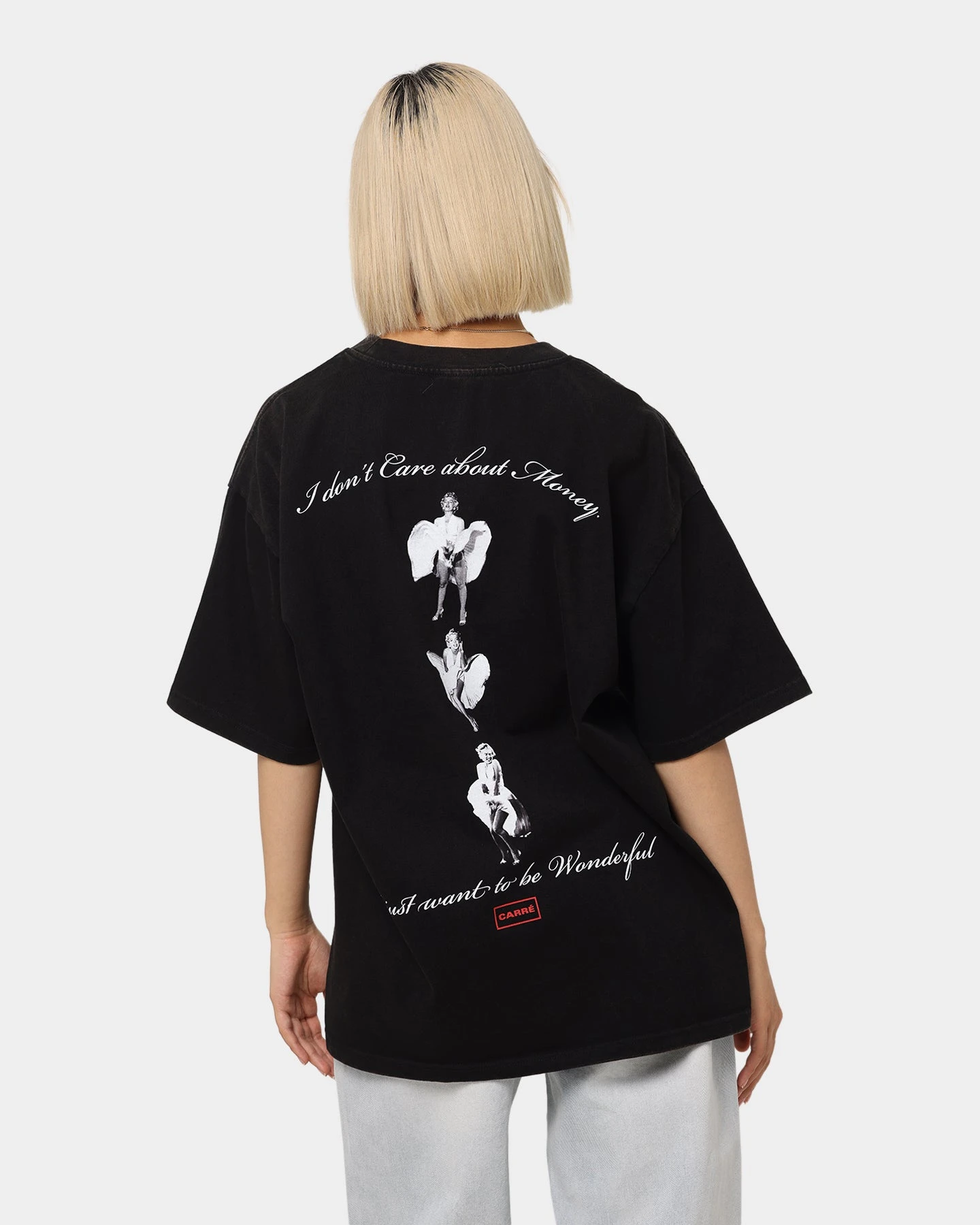 Carré is back with another epic collaboration, this time celebrating the iconic superstar Marilyn Monroe. The Carré X Marilyn Monroe Wonderful Vintage T-Shirt features printed graphics of the elegant Monroe, and a vintage wash that takes you back to her peak, elevating a basic tee to a statement. With dropped shoulders for a streetwear look, and a ribbed crewneck for ultimate comfort. Cop yours today!