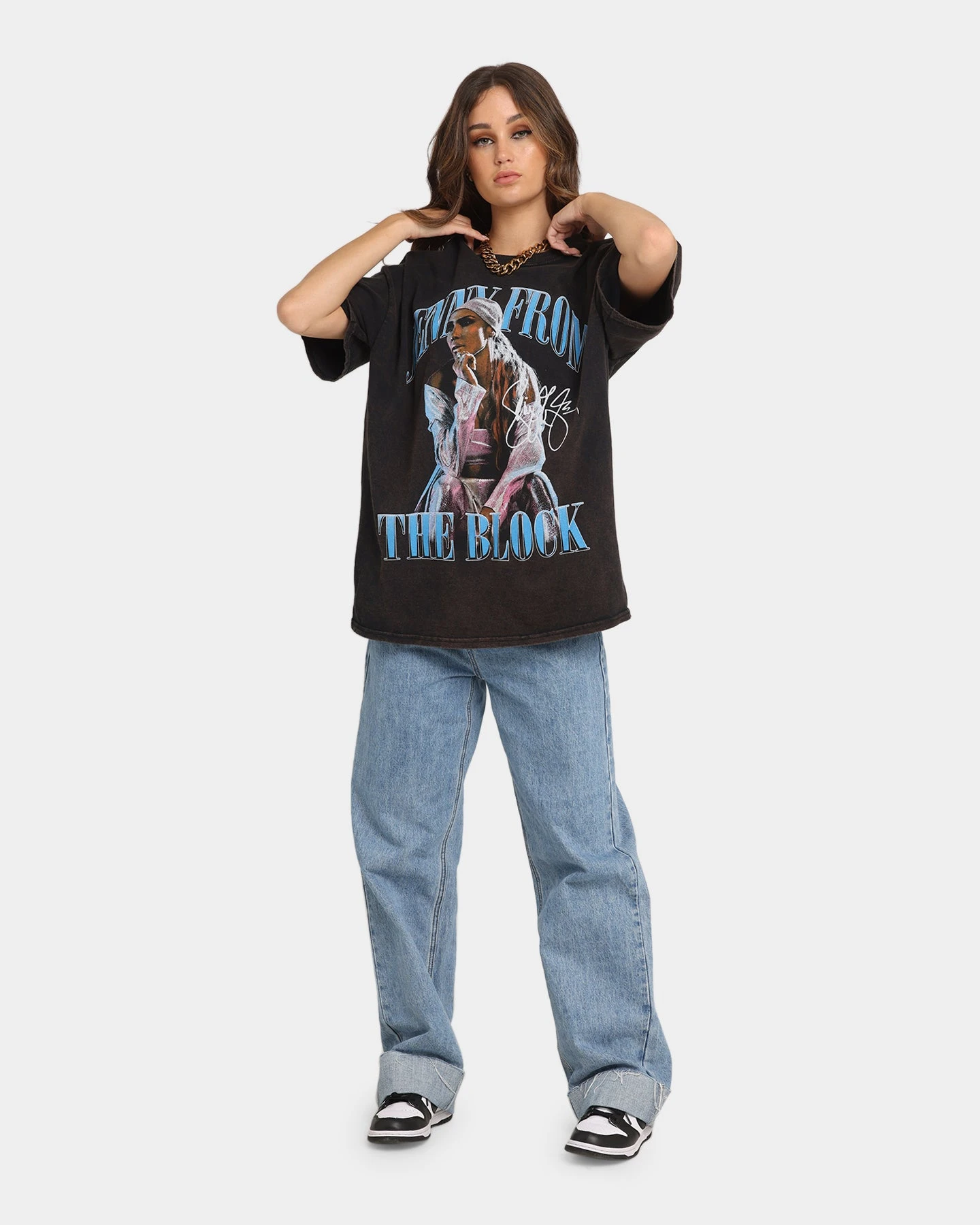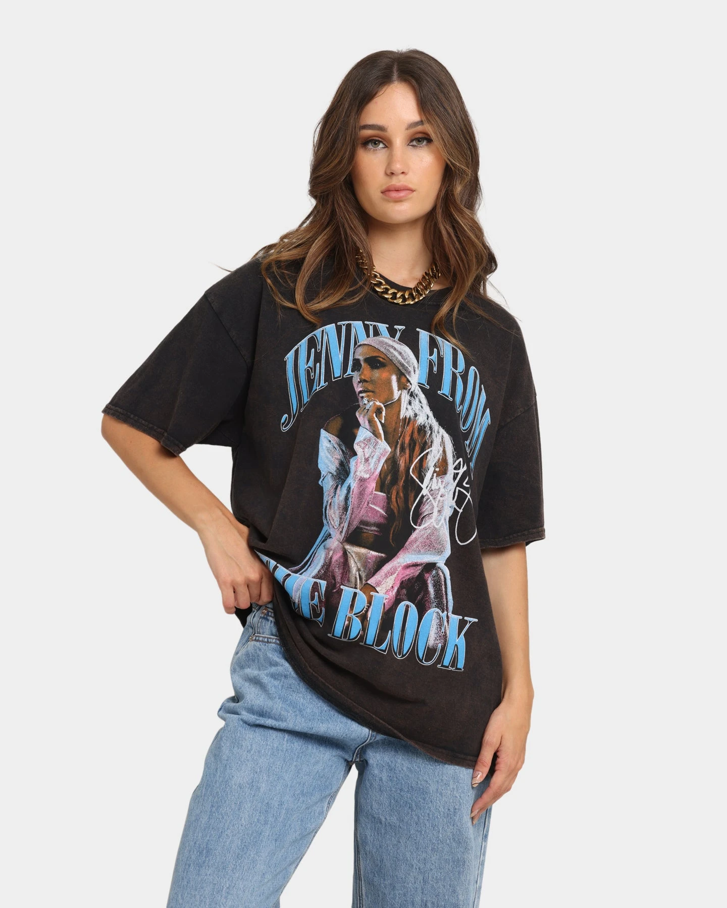 J.Lo is back and bringing those early 2000s vibes with her in the Jenny From The Block T-Shirt. This cotton made tee features sweet J.Lo graphics printed to the front, making it the ultimate fan shirt to have. Show your love to one of the most iconic female singers and cop yours today!
